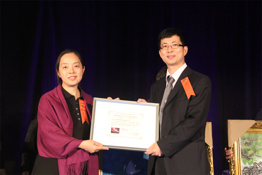 史元春向纽约校友会颁发“收藏纪念证书”