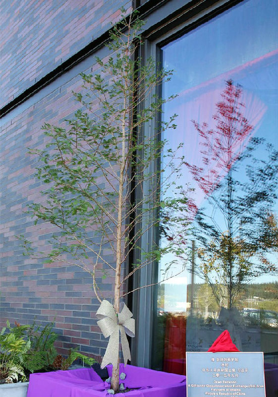 随着首栋大楼的落成使用,中国国家主席习近平赠送给全球创新学院的水杉也拥有了自己的新家——移栽至首栋大楼的门前。2015年9月23日,中国国家主席习近平访美期间专程到西雅图看望学院工作人员,并赠送水杉,祝福两校友谊常青,祝愿全球创新学院茁壮成长。两年来,在细心的呵护下,水杉长势喜人。水杉是中国特有的树种,被誉为植物王国的“活化石”,习近平将此树赠送给全球创新学院,寓意中国高等教育走出去的自信。