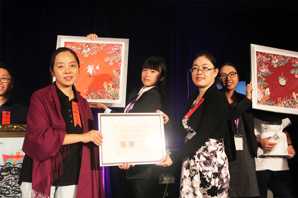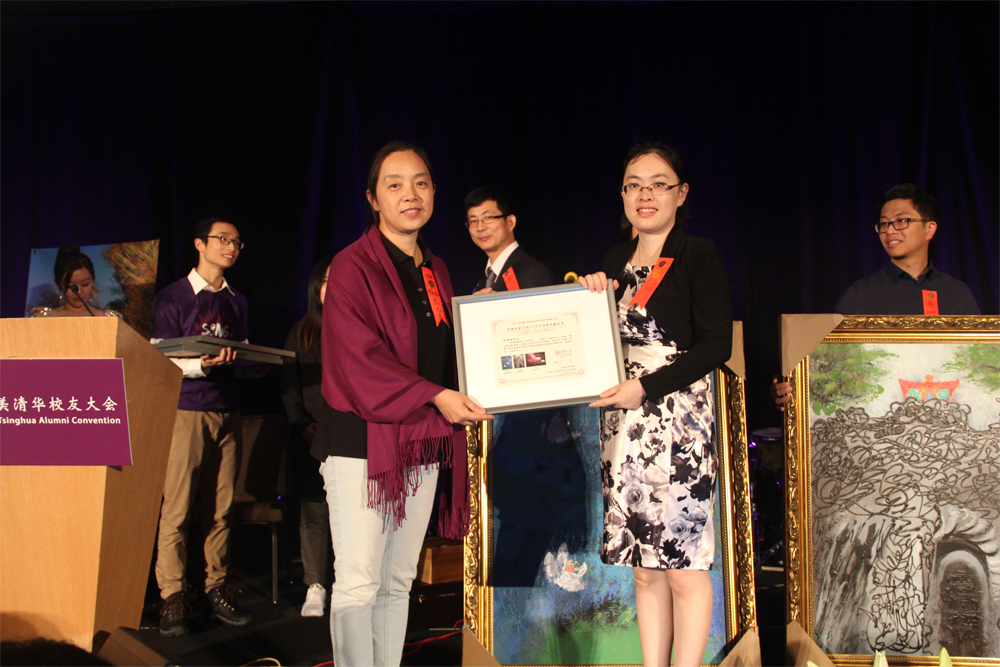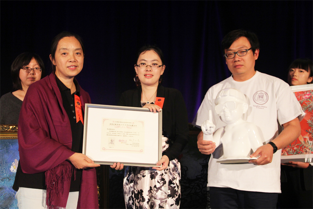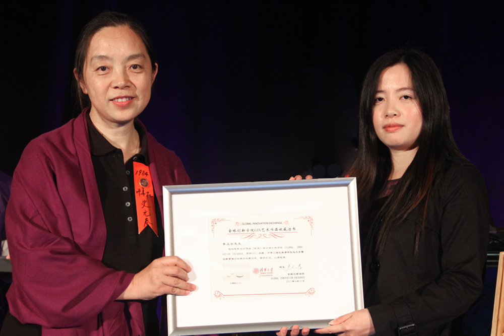 全球创新学院院长史元春致辞表示感谢,并为大纽约地区清华校友会颁发收藏纪念证书,为四位校友和艺术周赞助商中国山东威海爱威瓷业有限公司颁发收藏证书。